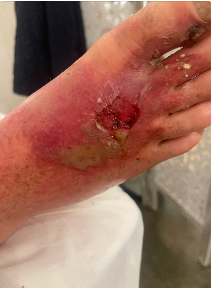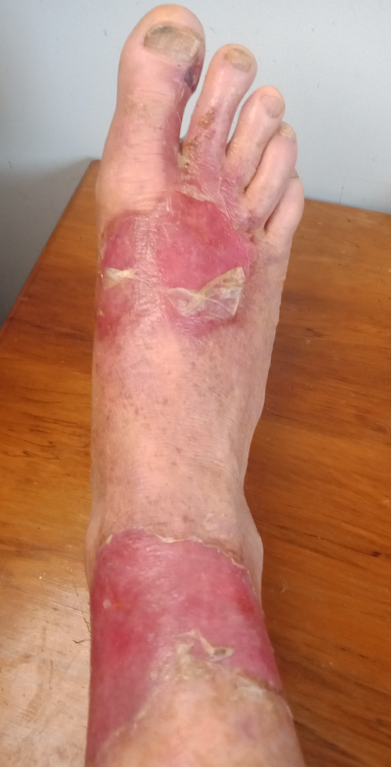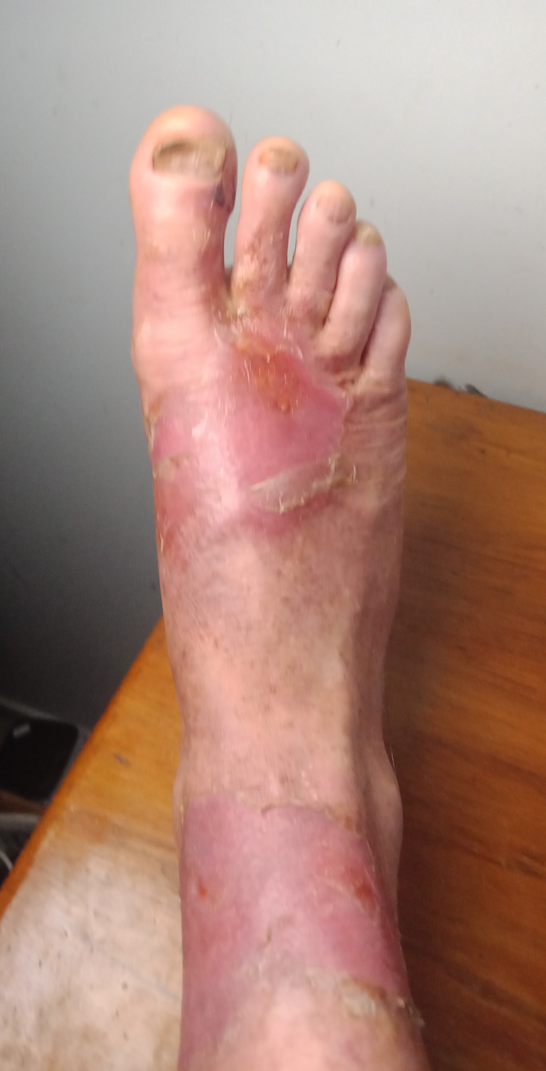 - Day 1: Severe swelling, weeping, infected, pain, inflamed foot and leg tissues -unable to walk